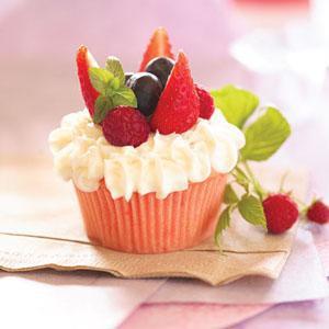 - Para adornar cortar verticalmente la fresa en cuatro. Organizar las frutas en el frosting como en la foto o a gusto.